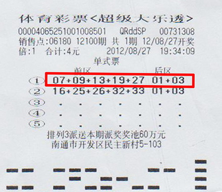 随机选号中了大乐透529万