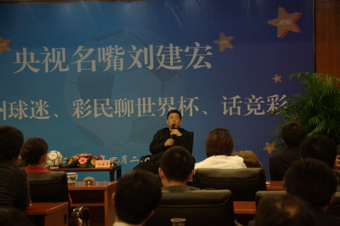 昨天,中央电视台著名体育节目主持人、足球评论员刘建宏来到苏州,与广大彩民和球迷话竞彩、畅谈世界杯。这也拉开了省体彩中心“央视名嘴话竞彩”活动的序幕。