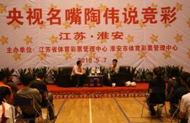在近期由江苏省体彩中心精心组织的“央视名嘴说竞彩”活动中,刘建宏、徐阳、张路、陶伟等央视名嘴先后来到江苏各地,与广大球迷朋友共话竞彩,品谈世界杯,再度在江苏各地掀起了一波“竞彩”旋风。5月7日下午,央视名嘴陶伟应邀来到淮安,在淮安体育馆与数百位球迷、彩民朋友热烈地品谈“竞彩”,聊足球,话世界杯,活动由淮安著名电视节目主持人王巍主持。陶伟对竞彩和足球专业精彩的分析,深入浅出的解说,幽默风趣的语言,使活动现场不断爆发出一阵阵热烈的掌声。