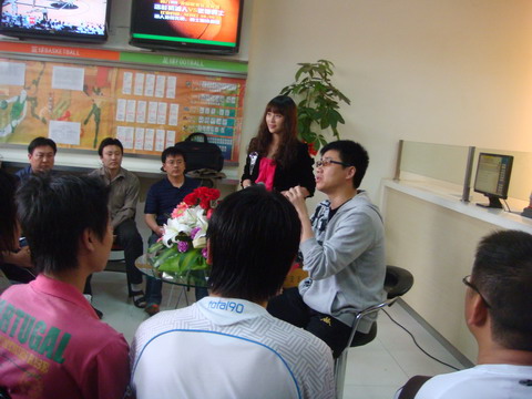 当日上午9点半左右,竞彩站点就来了大批的彩民和球迷等待着一睹央视名嘴的风采。10时,陶伟一身运动装准时出现在活动现场,当他用招牌式的“陶氏微笑”向港城彩民和球迷问好时,台下爆发出了阵阵欢呼声和热烈的掌声。在主持人问陶伟对连云港的第一印象时,他不假思索地脱口而出:“没来之前就很向往,来了发觉连云港真是个美丽热情的城市。”在活动开始阶段,陶伟详细地与港城球迷彩民们分享了他对足球的热爱,球赛解读的思维方式以及关于足球竞彩的心得和独特视角。在随后的互动环节,港城球迷彩民们踊跃地向陶伟提出各式各样的足球和竞彩领域的问题。面对港城资深“粉丝”们的高涨热情,又是面对面的零距离交流,见惯大场面的陶伟是既开心又紧张,会不时地擦一擦脸上渗出的汗,然后用通俗的语言对专业的问题一一给出了解答。