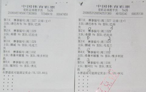 我们一看到小丁,就觉得他是位铁杆球迷,不仅穿着球衣,说起球赛来也是头头是道,内行的很。自从02394竞彩店在他单位附近开张之后,小丁就成了他们家的熟客了,不仅每天都光顾,还经常与驻店专家以及店里同样喜爱竞彩的彩民一起讨论球赛。这一次也不例外,打的是竞彩足球胜平负5串26,小丁填了单子之后就和02394站点的驻店专家讨论了一下,两人意见不谋而合,小丁很高兴的打了2张同样的彩票,并且相信自己能够拿到最高可能固定奖金!当开奖结果出来之后,果然不出小丁所料,稳稳揽获3.8万元奖金。