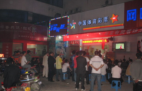 南非世界杯拉开战幕,为期一个月的激动、亢奋、晨昏颠倒的日子也已到来。由于时差的原因,大多数比赛都将在晚上甚至半夜进行,去哪里看球成了球迷朋友的困扰。在家看球固然自在,却少了分享的喜悦,有点孤独;相约朋友家里看球,氛围是有了,可除非独居单身,不然谁家受得了天天折腾?酒吧永远不用担心现场气氛不够,要担心的是荷包里的钱够不够……今年夏天,球迷看球又多了一个选择,那就是市内各竞彩网点!