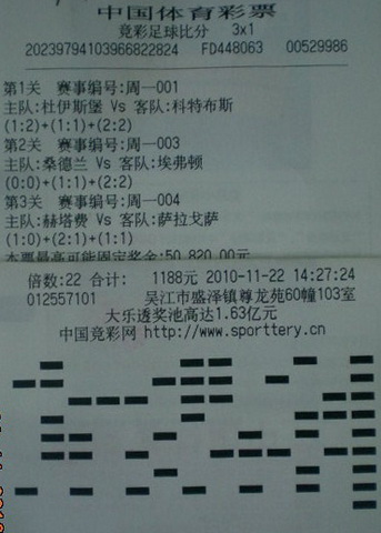 一般来说,初尝竞彩的人会从“胜平负”这种相对简单的游戏开始,猜“比分”一般是玩竞彩很久的人才敢尝试,因为“猜比分”选择性大,不稳定因素多,要猜中是一件很不容易的事。11月29日位于吴江市盛泽镇尊龙苑80幢103室的25571竞彩点就有彩民选择猜比分游戏,擒获了43560元的奖金。