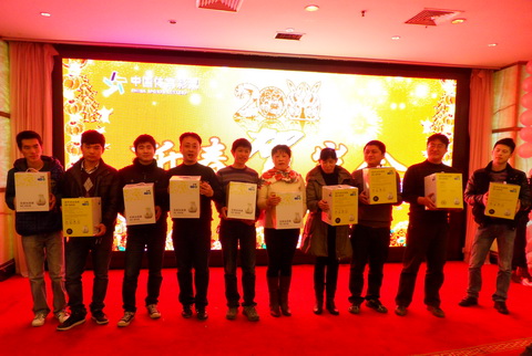 随后,广大竞彩业主、销售员一边品尝体彩中心精心准备的团年饭,一边参加精彩的抽奖活动和小游戏,现场气氛热烈。许多销售员主动上台表演节目,精彩的互动节目把贺岁会推向了一波又一波的高潮。体彩中心领导依次向在座的销售人员拜年,恭祝大家新年快乐,同时,向大家征求了对体彩工作的意见与建议。