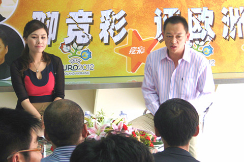 6月3日苏东老师做客连云港07329竞彩店,与港城彩民、球迷朋友聊竞彩、谈欧洲杯。2012欧洲杯将于6月9日拉开序幕,对于广大球迷朋友来说这又是一个激情的夏季。现在离欧洲杯开幕已经没有几天,球迷们的话题自然离不开参加欧洲杯的各个球队。座谈期间有的球迷朋友请教苏东老师:“我看足球20年了,从1990年就开始看了。我觉得今年欧洲杯的冠军还是在西班牙、德国、荷兰之间产生,不知道苏东老师怎么看?”对于球迷们的提问,苏东老师提供了许多关于欧洲杯的专业知识,他认为德国、西班牙夺冠的可能性较大,但是同样不能忽视波兰这匹“黑马”。