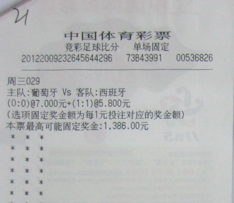 6月28日,西班牙点球大战4比2淘汰葡萄牙进入决赛。实力上的悬殊,使得赛前普遍看好西班牙队,然而顽强的葡萄牙不仅在90分钟比赛中未输一球,还将西班牙送到了点球决战的位置,只是命运的天平更倾向西班牙。在竞彩游戏中,竞猜的正是交战双方90分钟的赛果,这一0:0的结果给无锡江阴的一位竞彩玩家赢得154万元奖金。