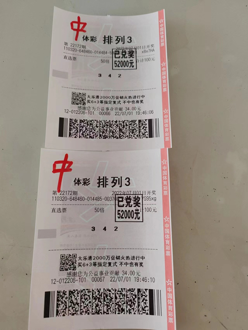 据业主仇先生介绍,中奖者是一位体彩的忠实粉丝,有着多年的购彩经验,平时对“排列3”、“排列5”玩法较有研究,每期都早早来看走势图,他心态很好,感觉好时就买的多一点,所以平常小奖也中不少。经过一番研究,特别看好“342”,就果断倍投了100注,幸运就是来的这么突然!次日上午,他便早早地来到体彩网点。业主仇先生确认彩票中奖后也替他感到高兴,当即就帮他兑奖。
