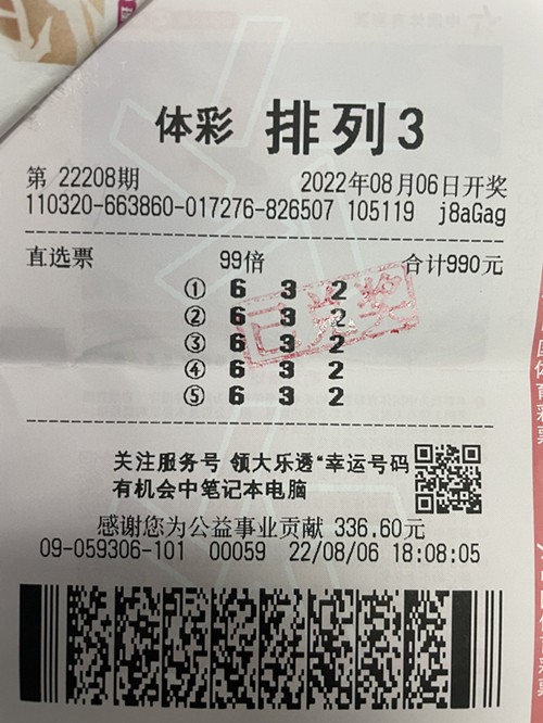 8月6日晚,体彩排列3第22208期开奖,全国共开出12007注直选奖,单注奖金1040元。位于盐城市滨海县永宁路18号的3209059306体彩网点,一名幸运的购彩者喜中排列3直选845注,收获奖金878800元。