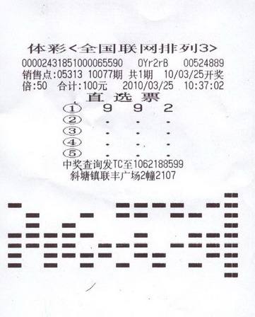 50倍、直选票、投注金额100元,这一系列干净利落的精准投注使得苏州彩民白先生(化名)勇夺“排列3” 5万元奖金。