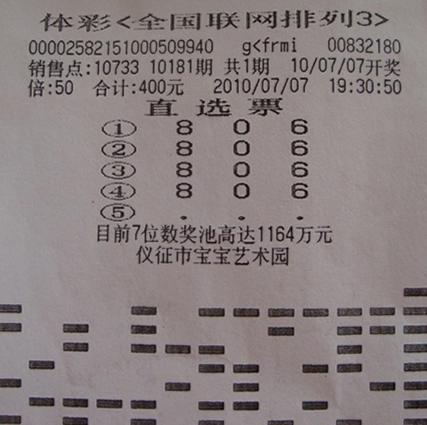 体彩玩法“排列3”是周女士的最爱,而且凭借多年的购彩经验,周女士俨然变成了一名技术彩民。09年,周女士曾在仪征10709站点分别中得排3直选大奖10万元和20万元;2010年的1月,又凭着自己的固守在10709站点中得排3直选600注,奖金60万元。7月7日下午,周女士来到10733站点,“上期088,这期我打200注806。”冷静执着的她就这样赢得了20万大奖!