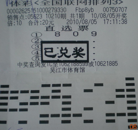 8月5日,第10210期“排列3”的开奖号码为8、0、9,来自苏州吴江的林先生(化姓)在体彩05623站点中得大奖,奖金总计10000元。