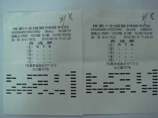 年轻的唐先生(化姓)就是这样一位神秘的投注高手。唐先生是个精明能干的生意人,投注体彩选起号码来更是干净利落。 8 月 18 日下午 5 点多,他来到位于长江路的 05861 站点,对 10223 期排列 3 投注了两张直选票,单注号码吃准了“ 574 ”,一张下了 36 倍、另一张下了 50 倍。当期开奖,唐先生就以“ 574 ”的号码成功摘得直选 86 倍,总计奖金 86000 元。