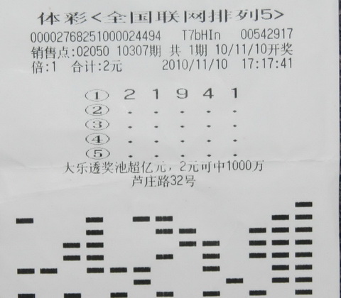 11月10日开奖的体彩排列5第10307期开奖号码为“21941”,无锡陈先生(化名)幸运获得10万元奖金。