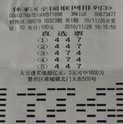 11月26日,体彩第10323期“排3”开奖,开奖号码为“4 7 4”,淮安一彩民幸运中得35000元。