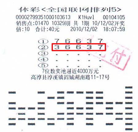 12月2日,王先生照常去站点买彩票,当期他特别看好排列5后四位“6637”这组号码,经过认真研究走势图,他购买了10329期排列5玩法的“76637”和“36637”这2注号码,并且都进行了十倍倍投。当晚收到的开奖短信中,排列5玩法的中奖号码正是王先生当期所购买的第二注“36637”,100万元的大奖就这样被他收入囊中。