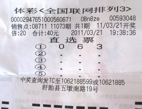 “排列3”第11073期开奖号码为:“0 6 3”,淮安盱眙彩民小刘(化名)倍投40倍揽获奖金4万元。