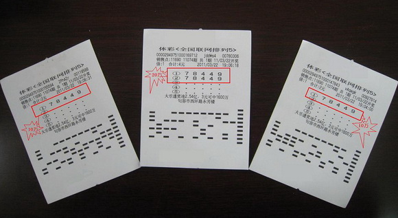 电脑体育彩票“排列5”第11074期于2011年3月22日开奖,本期开奖号码为“7 8 4 4 9 ”,该期江苏省共中得8注,其中4注被镇江句容一铁杆彩民一刀斩获,该中奖票出自位于句容市西环路水防楼的11690站点。