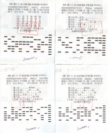 6月19日,昆山彩民老汤(化姓)兴高采烈地来到昆山兑奖处领取了11163期“排列5”20万元奖金。由于老汤的身份证正在办理驾驶员年检,工作人员在给老汤办理兑奖手续时可谓是一波三折,后来,老汤还是用了老婆的身份证才领到了这笔20万元的奖金。老汤介绍,自己选的5注号码都是家人和自己的幸运号,平时一直投注2倍,从不间断,2年多的守号终于让他如愿收获了20万。中出这2注“排列5”的是玉山镇新阳街05455站点。