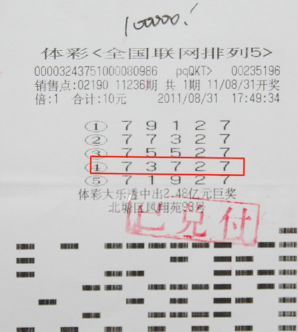 老张说排列5玩法只有一个奖项,这也是他第一次中得该玩法的大奖,这应该是功夫不负有心人,对他多年坚持投注的回报吧。奖金不太多,但也不是一笔小数,他要想一想再好好利用它。