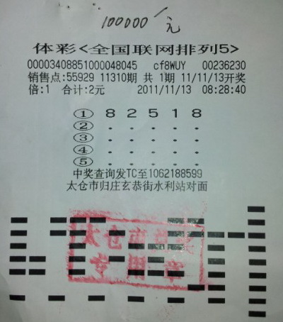 2元去打一注体彩,无论哪种玩法,能获最高奖是所有彩民的希望。而太仓的彩民小张就如此幸运,仅用2元就抓住了“排