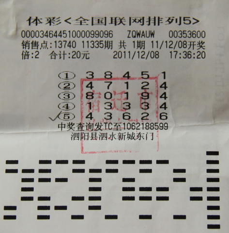 第11335期“排列5”的中奖号码为“43626”,位于宿迁市泗阳县幸福中路电信局北侧春城书店的13740站点中得2注10大奖,中奖彩民葛先生于近日来到体彩中心兑奖。“虽然现在是冬天,但我的心里却很暖和,我守的号码终于中奖了,梦想成真了的感觉很美好。”葛先生一进兑奖大厅便激动的说。兑奖人员接过葛先生手中的彩票,正是张20元中20万的中奖票。原来葛先生从一年前便选定了5组号码,一直进行2倍的倍投,今年将近年关之际,终于守得排5大奖。