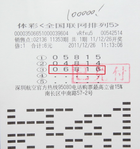 他告诉我们,在分析号码时,他在第二位和第五位数字上拿不准,但又预感到两个数字很可能是一样的,于是他就选择了三组号码进行投注,果然有一注命中。这位彩民还告诉我们,虽然他每天在投注前都会看走势,但有时还是会选择前一天的号码采取守号投注。不过,这一次中奖的号码是他当天选择的,他本想不中的话就守几天再换,结果很幸运,当天就命中大奖。