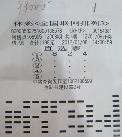 张先生中得的是“排列3”9.9万元,说起这张彩票,张先生是一脸幸福,虽说中的不是百万大奖,但这也是新年的一份大礼。张先生购买体彩已经有好多年了,对于各个玩法他都比较熟悉,“排列3”是他每天固定的投注玩法。