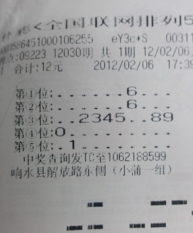 响水县专管员一早就接到09223站点王老板的报喜电话,说自己站点中了4注前一天晚上开出的排列5。专管员随即赶到该站点,在投注机上查证了此消息,第30期全省中出的4注排列5均为响水县09223站点所中。