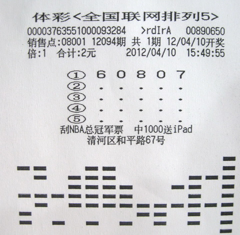 正当“刮NBA总冠军票中1000送iPad”活动火热进行时,淮安彩市又传来好消息,一彩民2元随机购买排列5中得10万元大奖。