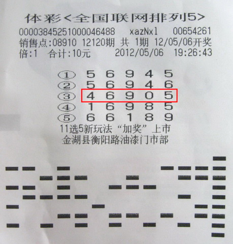 5月7日上午,金湖彩民孙老伯独自一人来到淮安市体彩中心,他再次中得排列五10万元大奖。