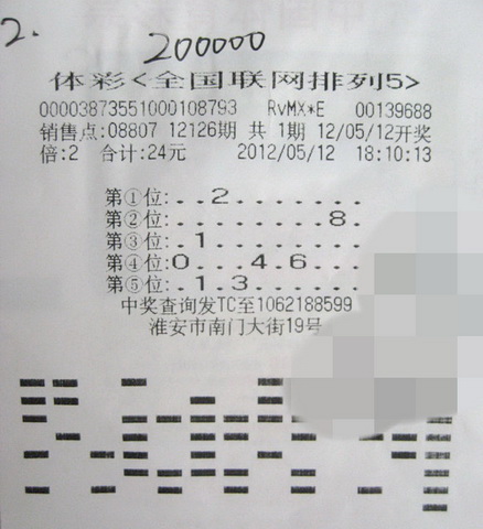 5月14日下午,彩民刘先生带着妻子从淮安区来到市体彩中心,他们中得排列5共60万元。
