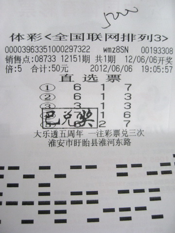 刘先生表示,自己坚持购彩已有好几年的时间了,现在有了回报,他非常的高兴。刘先生能中奖,肯定有自己的购彩秘诀,笔者请他分享下经验。他笑着表示,和大部分彩民一样,他也喜欢看走势图,观察大小、奇偶等组合,而且喜欢在位于盱眙县淮河东路的08733站点购买。6日晚上,刘先生照例来到站点,他先是和几位彩民聊了会天,然后就坐在一旁研究走势图。看了一会,他先买了一张5倍的直选票,然后又坐下来和周围的彩民聊天。将近八点时,刘先生又买了一张5倍的直选票。看着两张彩票,刘先生又研究起来,临近结束,刘先生果断“杀掉”几注号码,只留下“6 1 3”和“6 1 7”两注号码,然后倍投了10倍。最后的4分钟里,刘先生倍投了一张60倍的“6 1 3”直选票。