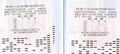 8月6日晚开奖的第12212期体彩排列3,当期江苏派奖奖池为60万元,组选3单注奖金为687元,比平时的两倍还多!南通海门06537站点一彩民看准“ 1 4 4 ”单式倍投160倍,中得奖金109920元。