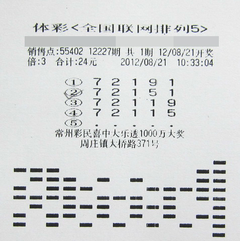8月21日开奖的12227期排列5,昆山周庄镇大桥路371号55402站点中出3注排列5大奖,奖金高达30万元。