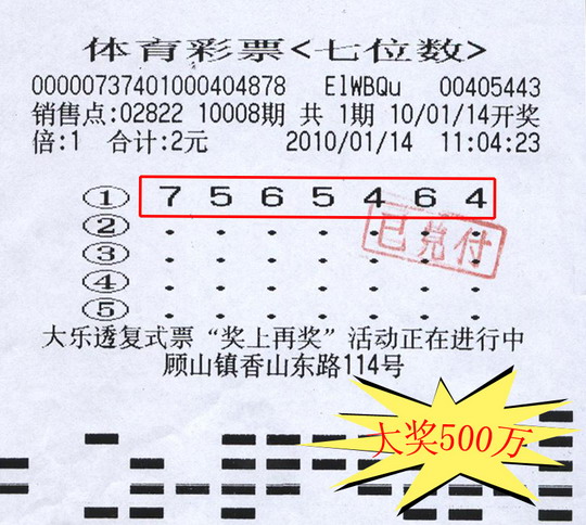 15号那天,小周和朋友去常熟办事,回家时发现附近的体彩站点又是横幅又是喜报的,几个人便前去凑热闹,听说是中出了500万大奖,有人便对小周打趣到“你不是经常买彩票吗,是不是你中的奖啊!”说者无意、听者有心,小周看了号码,464好像真是和他买的一样,再一细看“7565464“,这不正是他买的那注号码嘛!“中倒是中了,不过就20块钱”,小周告诉朋友,结果一群不明就里的人还在那儿嘲笑了他半天。对于这笔丰厚的奖金,小周表现首先会清还之前做生意欠下的账务,“之后当然是重新规划一下,看能不能东山再起了”。