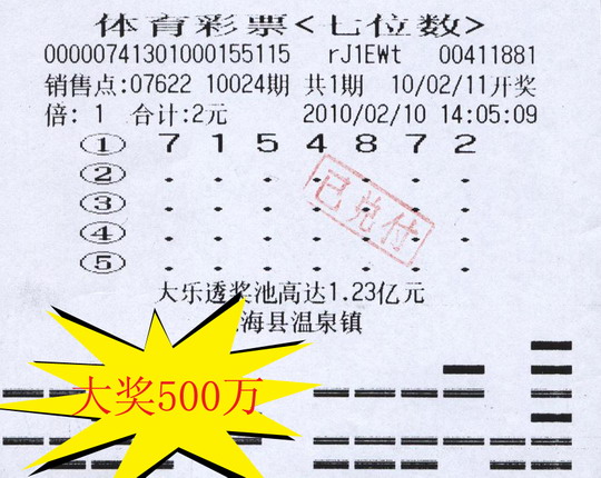 中500万只需2元钱 揣着大奖彩票过年