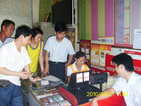 站点业主孙永召和销售员陈玉花夫妻档以热情周到的服务、专业合理的推荐、诚信务实的经营吸引了大批的盱眙彩民,拥有众多的“体彩粉丝”。在他的体彩店里,几乎没有高潮低谷之分,从早到晚店内都是川流不息、人声鼎沸,大批忠诚的彩民聚集在一起,热侃体彩彩经,购彩的人群总是排着长队。继