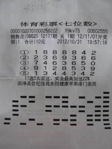 10月31日晚,徐先生路过洪泽县世纪佳苑东侧的08620体彩站点,于是就进去坐了下来。不一会,他看好了5注号码,就让销售员打了出来,然后直接把票塞到了口袋里。