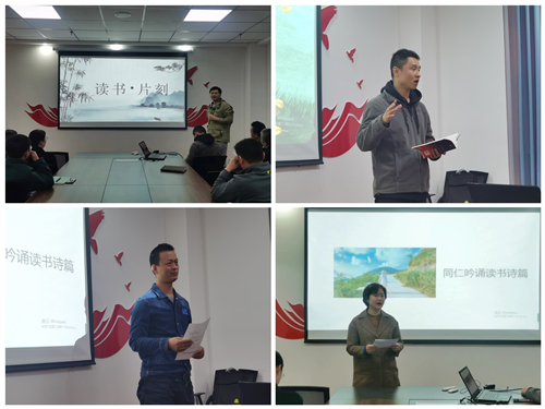 读一本好书,在阅读中收获滋养。点一盏灯光,在书香中奋进成长。读书会上,大家首先学习习近平总书记的读书故事,从梁家河到中南海,从基层工作到治国理政,习近平总书记始终把读书学习当成一种生活态度、一种工作责任、一种精神追求。业务部副部长与大家分享了他的读书感悟,读书可以养浩然之气,塑高尚人格。随后,中心主任、专管员等分别为大家吟诵读书诗篇,一首《从前慢》让我们感受到跃然纸上的美好与宁静,一首《满江红》又让我们激情澎湃、热血沸腾。最后,综合部副部长为大家推荐了一本值得反复看的好书——《阅读的方法》。