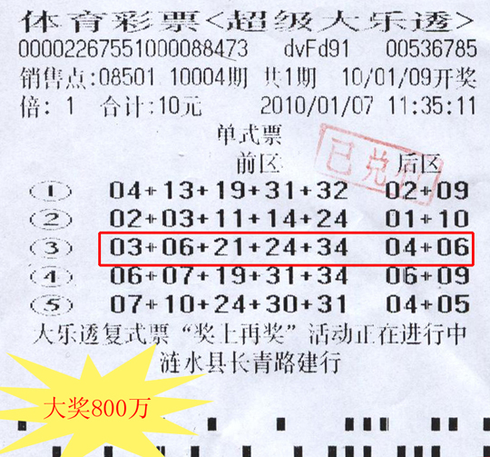 据了解,高先生也是一位老彩民了,体彩的大盘玩法7位数和大乐透他每期必买,一般都要花上四五十元。购彩多年,虽然高先生只是中些小奖,但他乐此不彼,从未中断过。对于大乐透的投注,高先生还是自有一番心得,他采用研号和随机相结合的方式,一般是自编的5注单式号码成一组,另外随机5注单式号码再来一组,然后每期固定投注,如果两三个月不中就再更换。本期的号码高先生已经投了一个多月,中奖票上第3注号码“03 06 21 24 34+04 06”正是本期的中奖号码,而该组号码全部来自高先生的自编号。由于是单式票而且没有追加,尽管当期的奖金达到800万,但却是大乐透玩法独中的最低奖。不过在领奖过程中高先生一直很从容淡定,本次的中奖甚至都没告诉家人,只是带着站点上一位共同作战的亲密彩友前来领奖。“找个适当机会再告诉家里人吧,我怕他们高兴坏了。”高先生最后淡淡的说道。