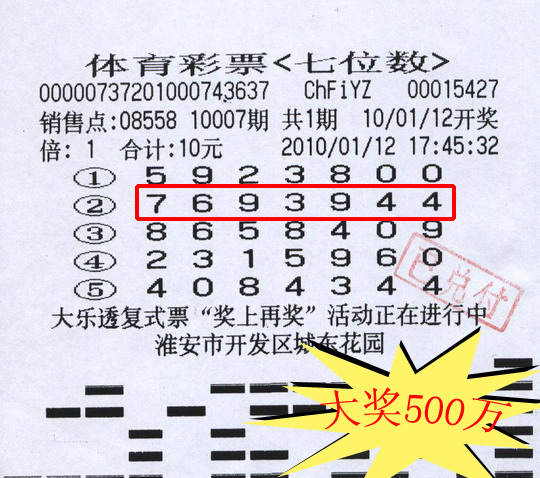 用大乐透或7位数的零钱买顶呱刮,这在我省体彩站点极其常见。不过用顶呱刮奖金零头买7位数再中500万大奖这就比较罕见了,而淮安小伙小王就是这样一位幸运儿。