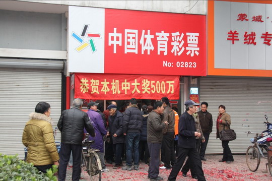 20日一大早,当体彩工作人员赶到大奖中出网点——位于顾山镇香山西路77-2号的02823网点时,早已是人头攒动,门外门内挤满了兴高采烈地彩民。销售员也忙地不亦乐乎,他告诉我们:“前几天的500万大奖也出在我们这条路上,当时听着震耳的鞭炮声,还想什么时候我的站点也中出个500万大奖,想不到才过了这几天,大奖就真的来了。”他一边忙着给彩民打票一边继续跟我们聊:“前几天大奖一出来,买彩票的彩民明显增加了很多,这一条路接连中出两个500万,应该算是彩民的幸运、幸福路了。”