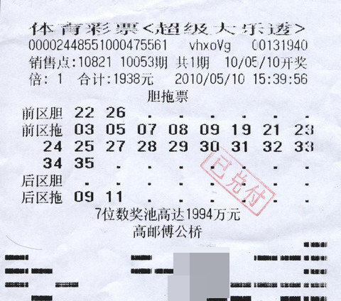一张彩票中奖969注
