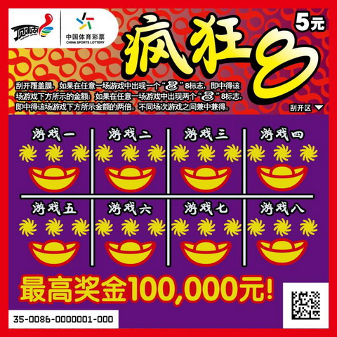 即开体彩顶呱刮又有新票种问世了,本周,最高奖10万元的新票“疯狂
