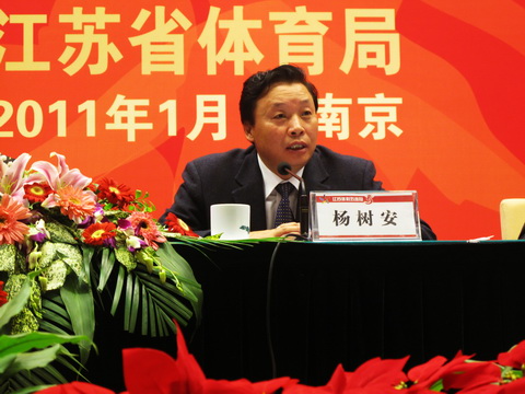 国家体育总局副局长杨树安充分肯定了江苏体彩对于全国体彩事业发展作出的贡献,他指出,江苏体彩之所以在体育彩票领域形成独特的“江苏现象”,一是各级领导重视,充分发挥体制优势,使江苏省体育彩票工作形成了齐抓共管、立体作战、协调推进的态势;二是不断强化基础建设,为体育彩票健康和可持续发展提供了可靠保证;三是扎扎实实工作,勇于开拓创新,是江苏体彩铸就辉煌的强大精神力量。围绕“十二五”规划提出的各项战略目标,他对江苏体彩提出了几点希望:一是深入贯彻落实2011年全国体育局长工作会议和全国体育彩票工作会议精神,认真学习和贯彻落实全国体育彩票“十二五”发展规划,制定好、实施好本省的战略规划,明确肩负的职责和发展的方向;二是进一步完善体育行政部门主要领导亲自抓体育彩票工作的领导机制,不断夯实基础工作,创新管理制度,提高整体管理水平和执行力;三是强化安全风险意识,确保安全运营。从而扎扎实实完成各项工作,争创佳绩。