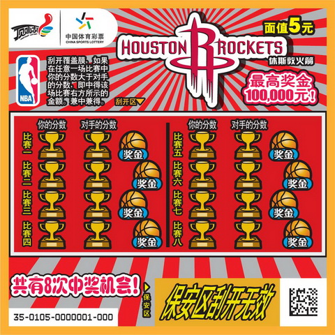 不同于10元票着重展示球星风采和NBA比赛场面,5元票在设计上则突出了NBA各大球队的队徽。休斯敦火箭、洛杉矶湖人、波士顿凯尔特人、迈阿密热火、芝加哥公牛……这些耳熟能详的球队的队徽携手登上“顶呱刮”票面,有如一场流动的NBA队徽展览。对NBA球迷来说,此番的5元NBA主题票则是一次不可错过的NBA队徽大赏,因此极具收藏价值。