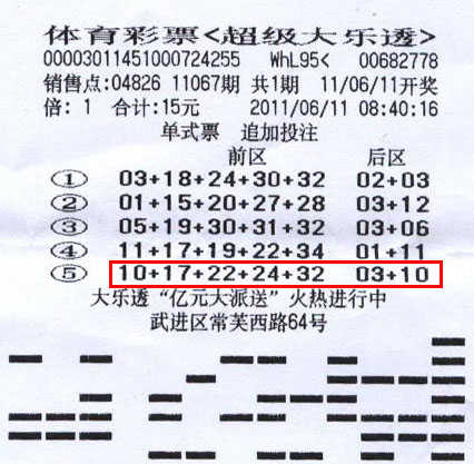 据了解,陶先生彩龄3年左右,主攻玩法正是此次擒得巨奖的大乐透。陶先生是坚定的守号一族,在第一次购票打了5注随机号之后,陶先生就一直坚持投注那5注号码,3年未变。今年大乐透的强劲走势实在让人振奋,所以陶先生给自己定下了奖池过3亿进行追加投注的原则。11067期,陶先生所购彩票上的第5注号码“10-17-22-24-32+03-10”与当期中奖号码丝毫不差,顺利擒下巨奖,由于是追加中奖,总奖金达到了1075万元。