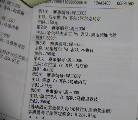 据悉,这三位中年男子均来自无锡,为首的谭先生向我们介绍,他们是一个多达16人的合买竞彩团队,成员大多数是生意人和要好的朋友,从去年世界杯开始正式组队。有趣的是在这个团队中,谭先生等五六人懂竞彩,负责策划具体的投注,其他人只管投入等着分红就可以了。谭先生还介绍道,并不是每次投注都能手到擒来,但如果中出一次就会收获很大,而合买的最大好处就是既分摊了投注风险,又能重拳出击毕其功于一役,赢得重磅级大奖。