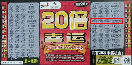 自从有了百万票种的加盟,顶呱刮便成为了为我省制造百万富翁的生力军。在刚刚过去的2011年中,我省彩民共收获了顶呱刮百万及以上大奖28个之多,而今年的即开百万中奖之旅由经典票种“20倍幸运”开启,也充满了无限美好的寓意。据悉,目前“20倍幸运”、“宝石之王”、“超级赢家”等百万票种正在全面热销之中,大家可以走进身边的体彩站点寻找属于你的幸运。