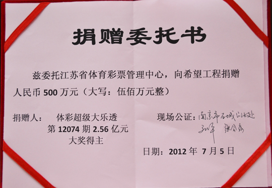 委托省体彩中心向“希望工程”捐款 500 万